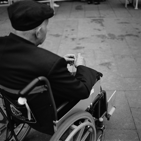 フランス/ルルド グロッタ (洞窟) 前でロザリオを繰る老人
