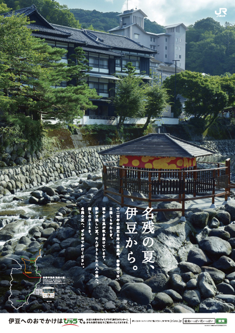 JR東日本・B全ポスター(73cm×103cm)撮影しました。 伊豆・修善寺、独鈷の湯(源泉)・前泊、明朝 4 時からのハードスケジュール。50m 先から水を引いて水撒き。 夏の炎天下、焼けた岩はすぐ乾くので夕方まで 6 回ほど繰り返しました。おつかれさまでした!
